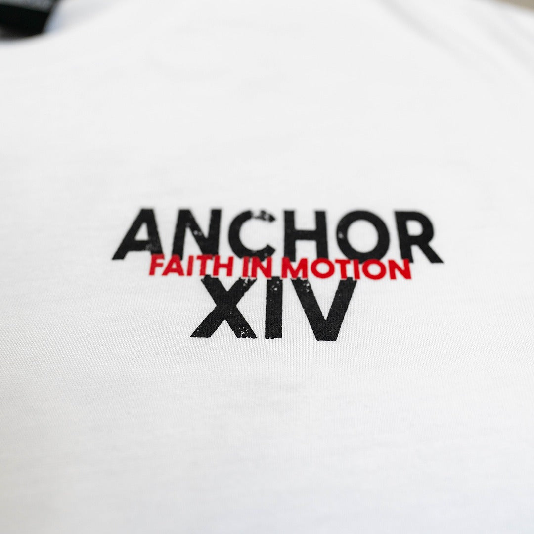 - Front Print: Anchor XIV logo + Faith in Motion tagline